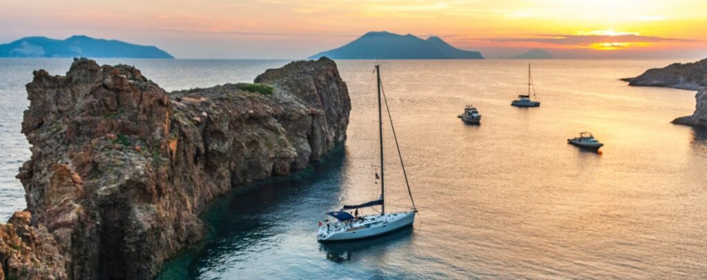 Це архіпелаг в Тірренському морі, відомий своїми активними вулканами, гарячими джерелами, чорними вулканічними пляжами і мальовничими бухтами. Острови приваблюють виноградниками, атмосферними селами, смачною їжею і можливістю спостерігати за виверженням вулкану Стромболі безпосередньо з яхти